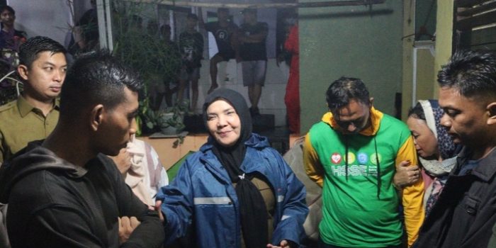 Bandar Lampung – Beritaphoto.id Ditengah guyuran hujan deras pada Selasa (14/4/2026) malam, Wali Kota Bandar Lampung Eva Dwiana temui keluarga korban yang