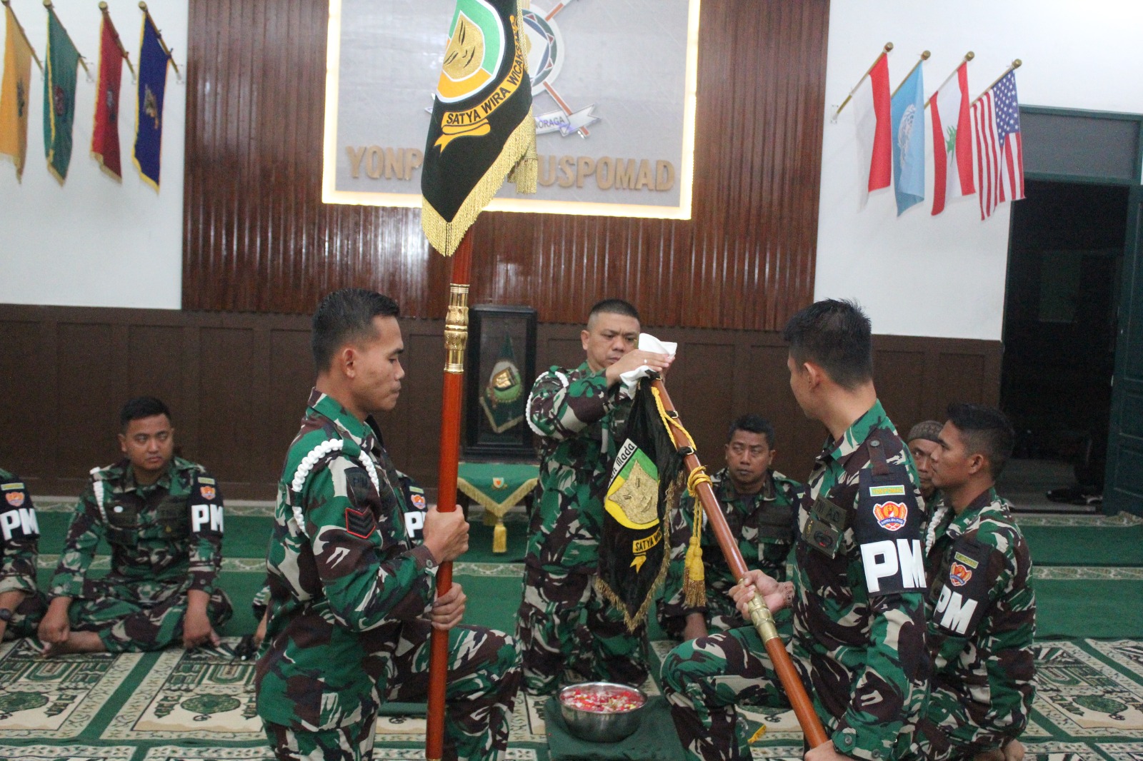 Danyonpomad Puspomad Letkol Cpm Hanri Wira Kusuma, S.H., M.Han. memimpin acara Pemugaran dan Penjemasan Patola Yonpomad di Ruang Waspada Mako Yonpomad Jonggol, Jawa Barat.