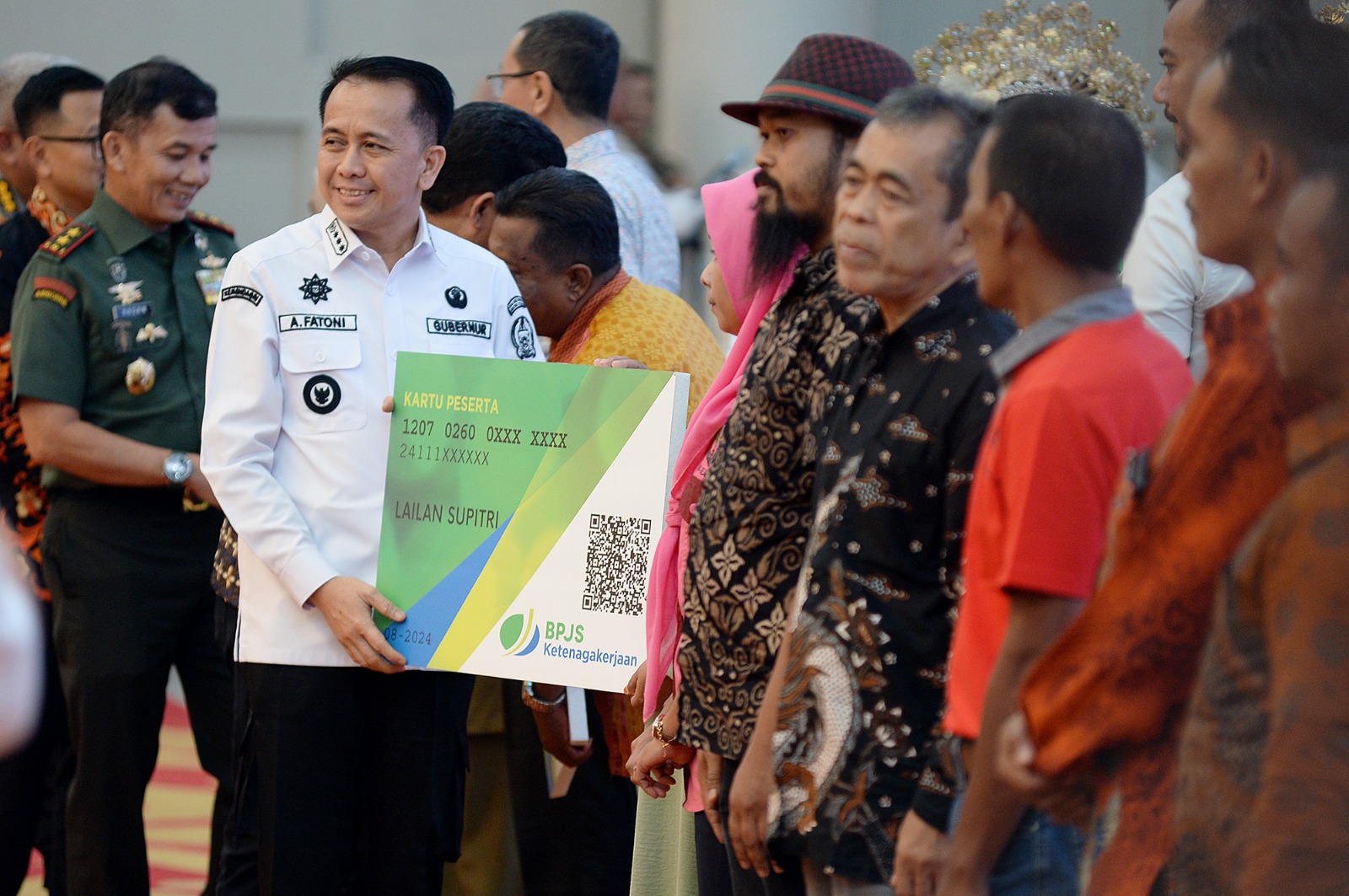 Melalui kesempatan ini, Pj Gubernur Sumut Agus Fatoni juga menyerahkan penghargaan pada Kota Medan, Kabupaten Simalungun, Kabupaten Langkat dan Kota Sibolga atas paritispasi aktifnya dalam perlindungan pekerja rentan di wilayahnya. Tak hanya itu, dirinya juga menyerahkan Kartu BPJS ketenagakerjaan secara simbolis pada perwakilan pekerja rentan.