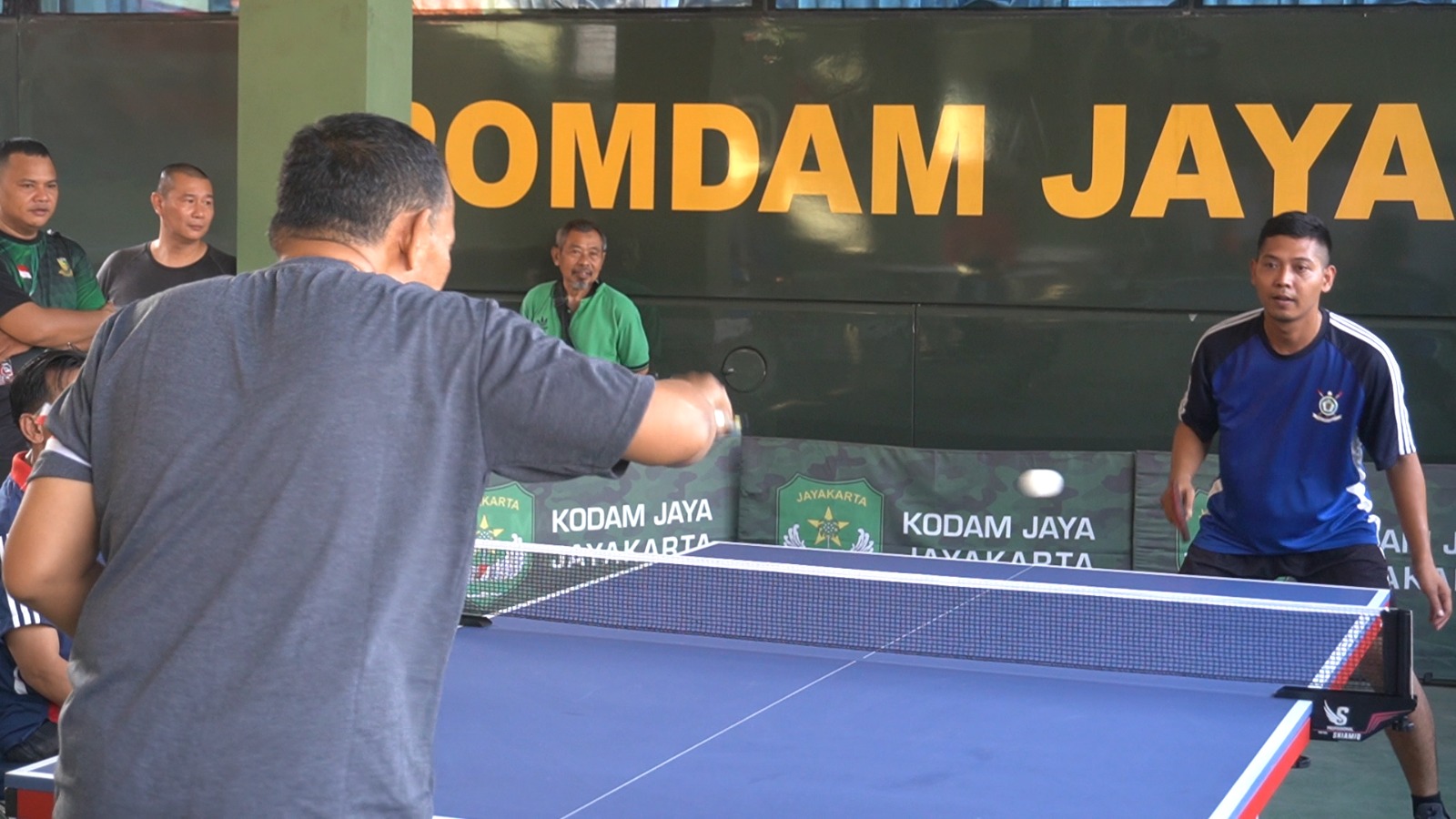 Dalam rangka menyambut HUT RI Ke-79 Tahun, Prajurit Yonpomad mengikuti kegiatan lomba tenis meja yang bertempat di garasi Ton Angkutan Pomdam Jaya, Jayakarta.