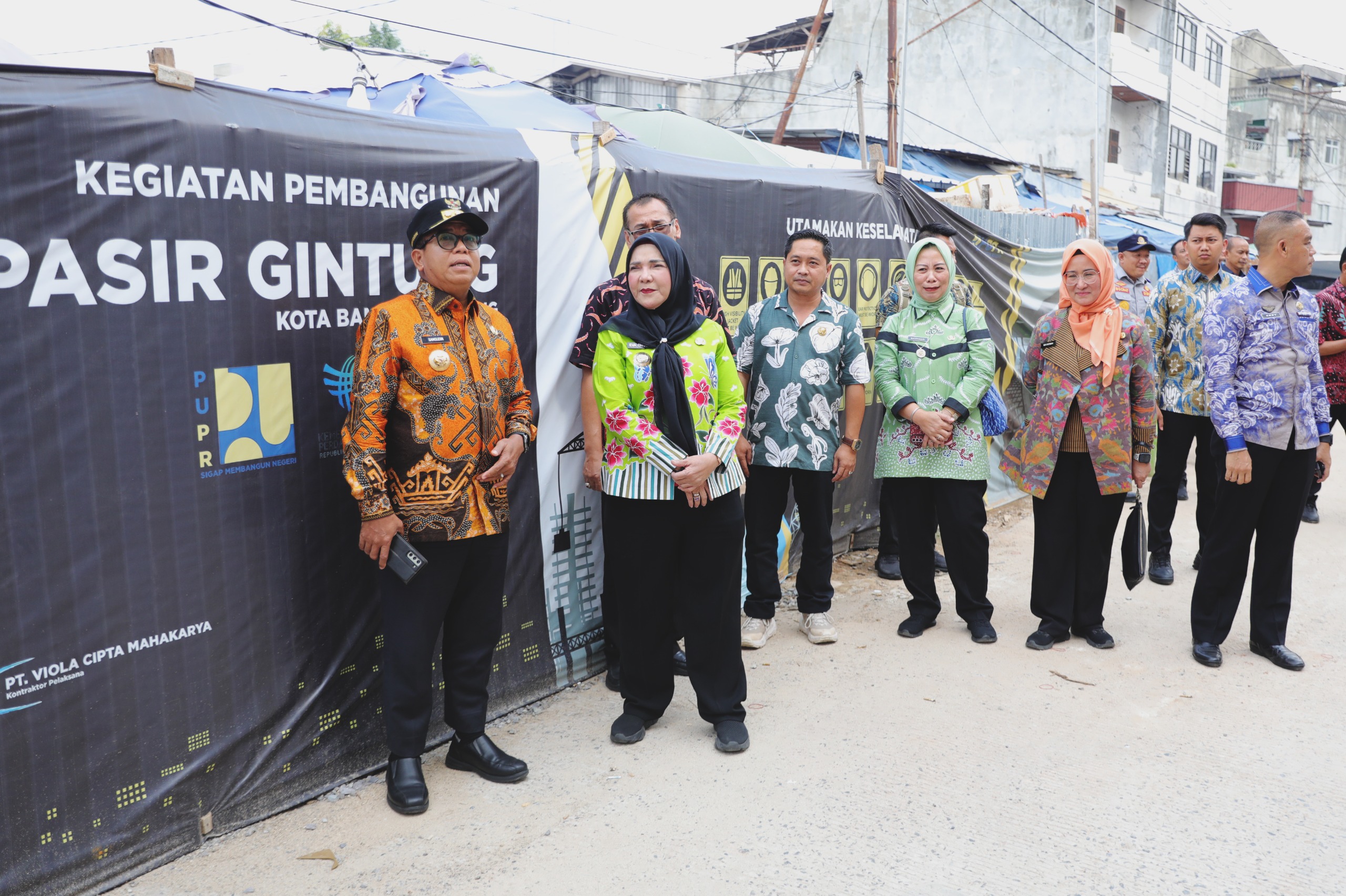 Pj. Gubernur Lampung Samsudin, didampingi Walikota Bandarlampung Eva Dwiana, meninjau progres pembangunan Pasar Pasir Gintung, Kota Bandar Lampung, Kamis (22/08/2024).
