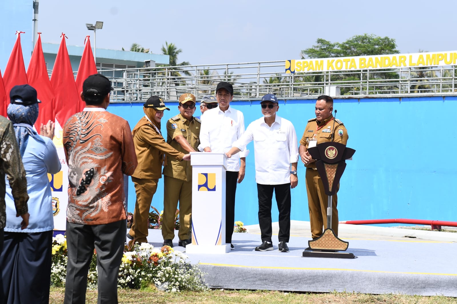 Presiden Joko Widodo meresmikan Sistem Penyediaan Air Minum (SPAM) Kota Bandar Lampung di Kabupaten Lampung Selatan, Provinsi Lampung, pada Senin, 26 Agustus 2024. Peresmian ini merupakan bagian dari upaya pemerintah dalam meningkatkan akses air bersih bagi masyarakat di daerah.