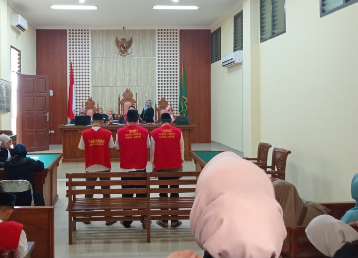 Bandar Lampung -Beritaphoto.id Tiga Terdakwa Tarmizi , Yusnaniar dan Ferri , Tiga terkait perkara pencurian sebuah Alfamart di Jalan Raya Natar, Desa Natar, Kecamatan Natar, Kabupaten Lampung Selatan divonis hakim 10 Bulan penjara pada sidang yang digelar di Pengadilan egri Kelas 1A Tanjungkarang ,selasa(27/8/2024)