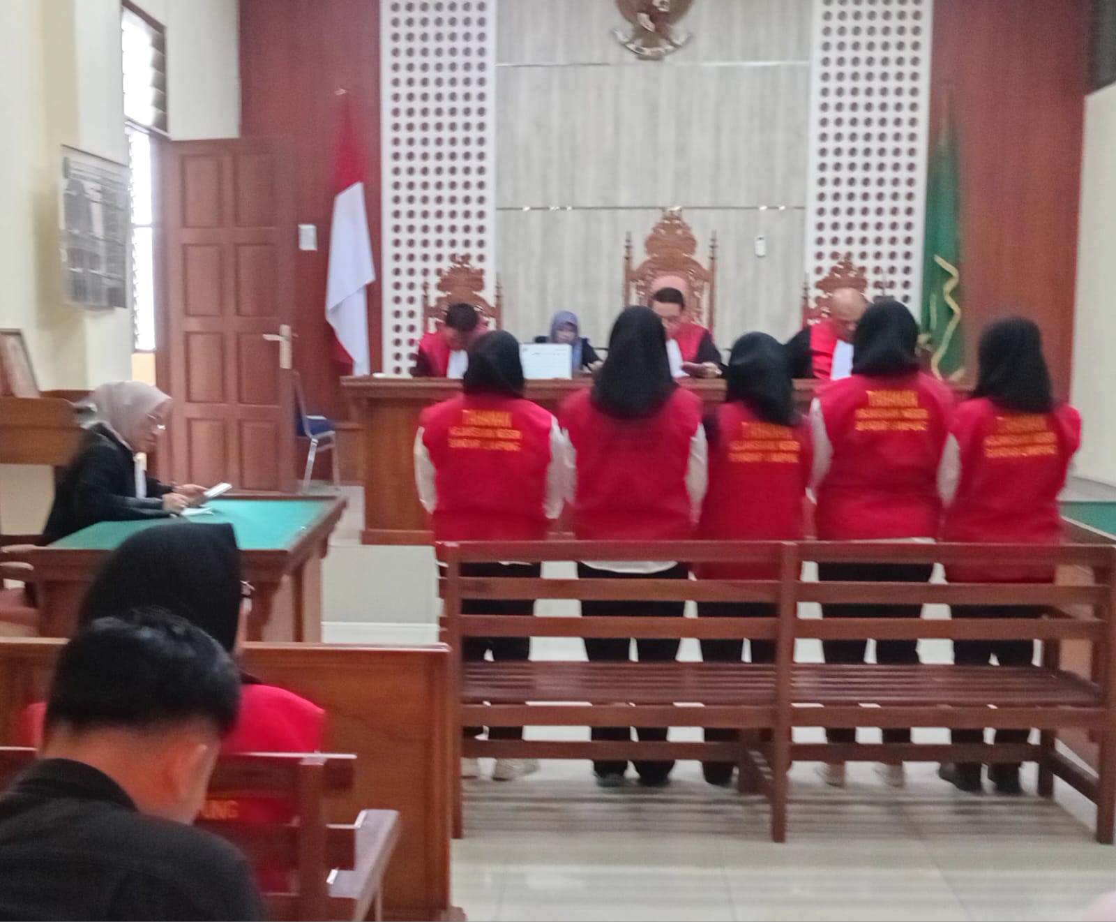 Jaksa Penuntut Umum menyatakan ke lima IRT terbukti bersalah pasal 27 ayat (2) jo pasal 45 ayat (3) UU RI nomor 1 tahun 2024 tentang perubahan ke 2 atas UU nomor 11 tahun 2008 tentang ITE jo pasal 55 ayat 1 ke 1KUHP meminta kepada majlis hakim menghukum para terdakwa selama 2 tahun Penjara kata di depan persidangan