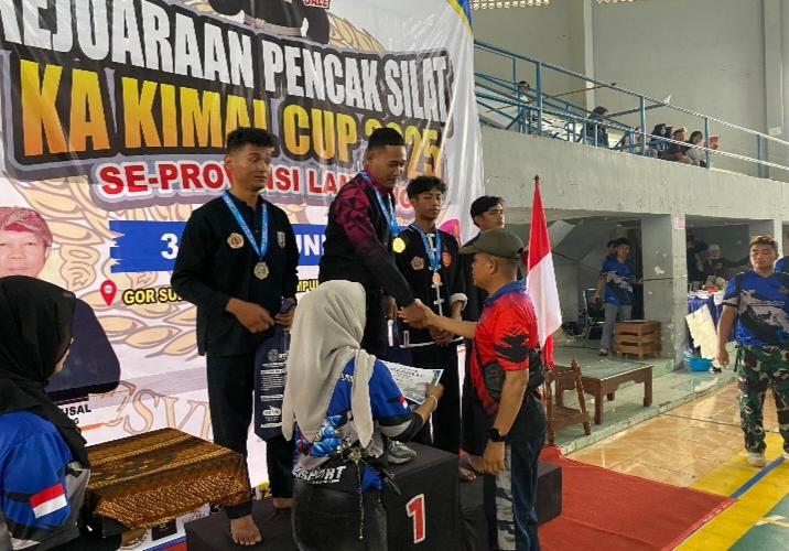 Prajurit Muda Yonif 7 Marinir menjadi Juara dalam Kejuaran Pencak Silat Piala Ka Kima CUP Th 2025 di GOR Sukung Kotabumi, Provinsi Lampung. Minggu (1/06/2025)