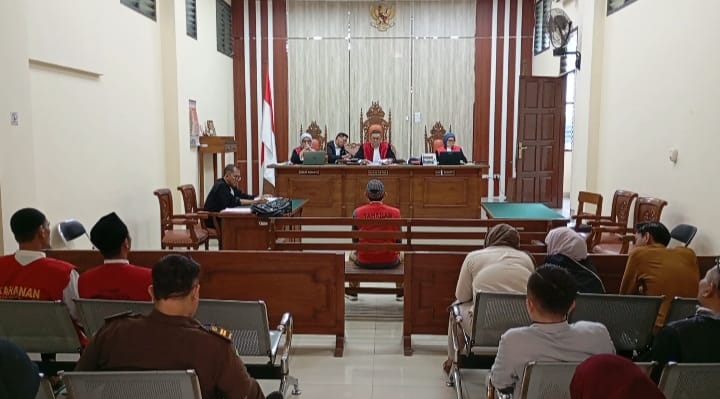 Sidang agenda pembacaan tuntutan oleh Jaksa Penuntut Umum Roosman yusa, terdakwa terlihat gelisah dan pasrah saat jaksa membacakan surat tuntutan terdakwa