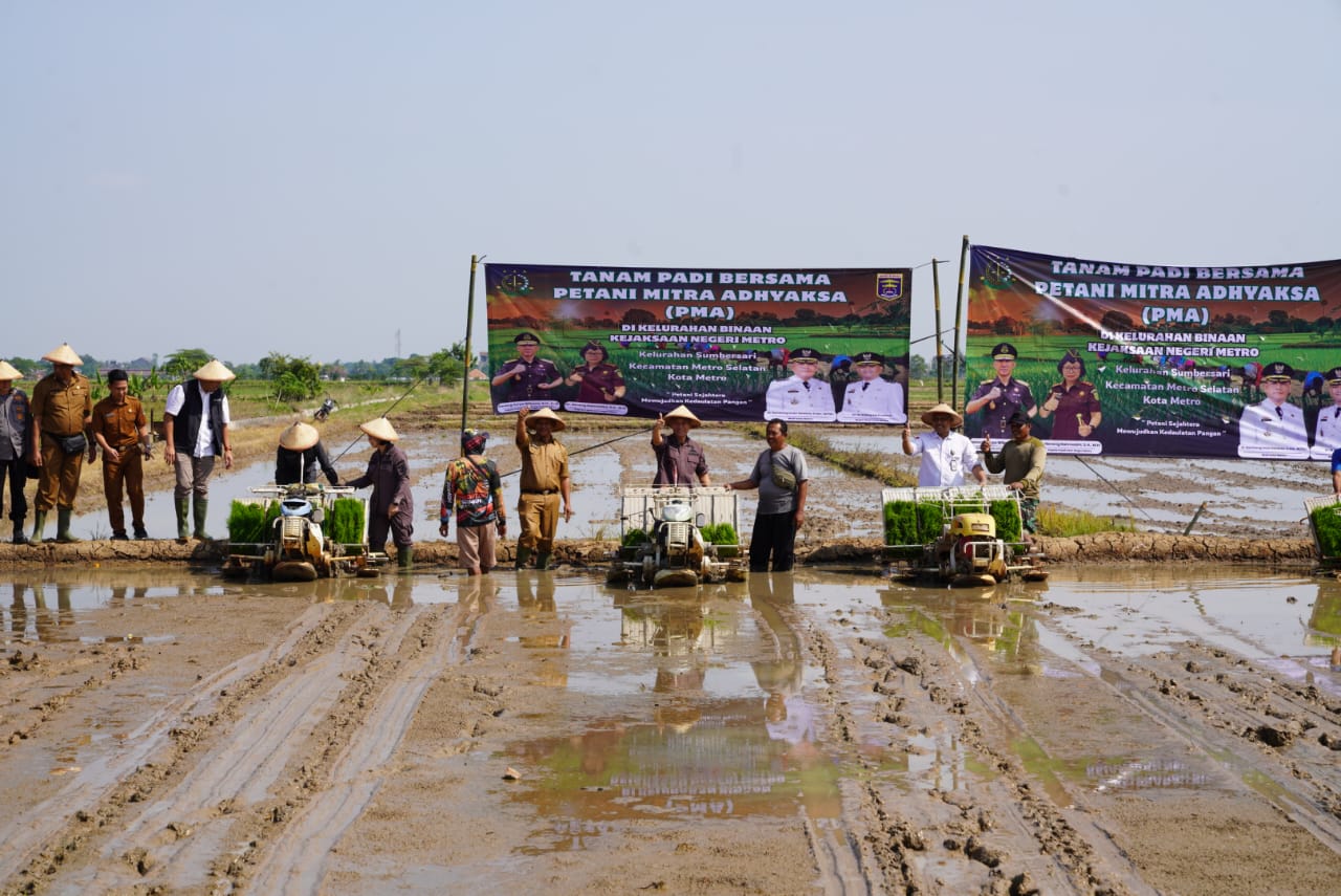 Kajati Lampung Hadiri Tanam Padi Bersama Petani Mitra Adhiyaksa Kota Metro.