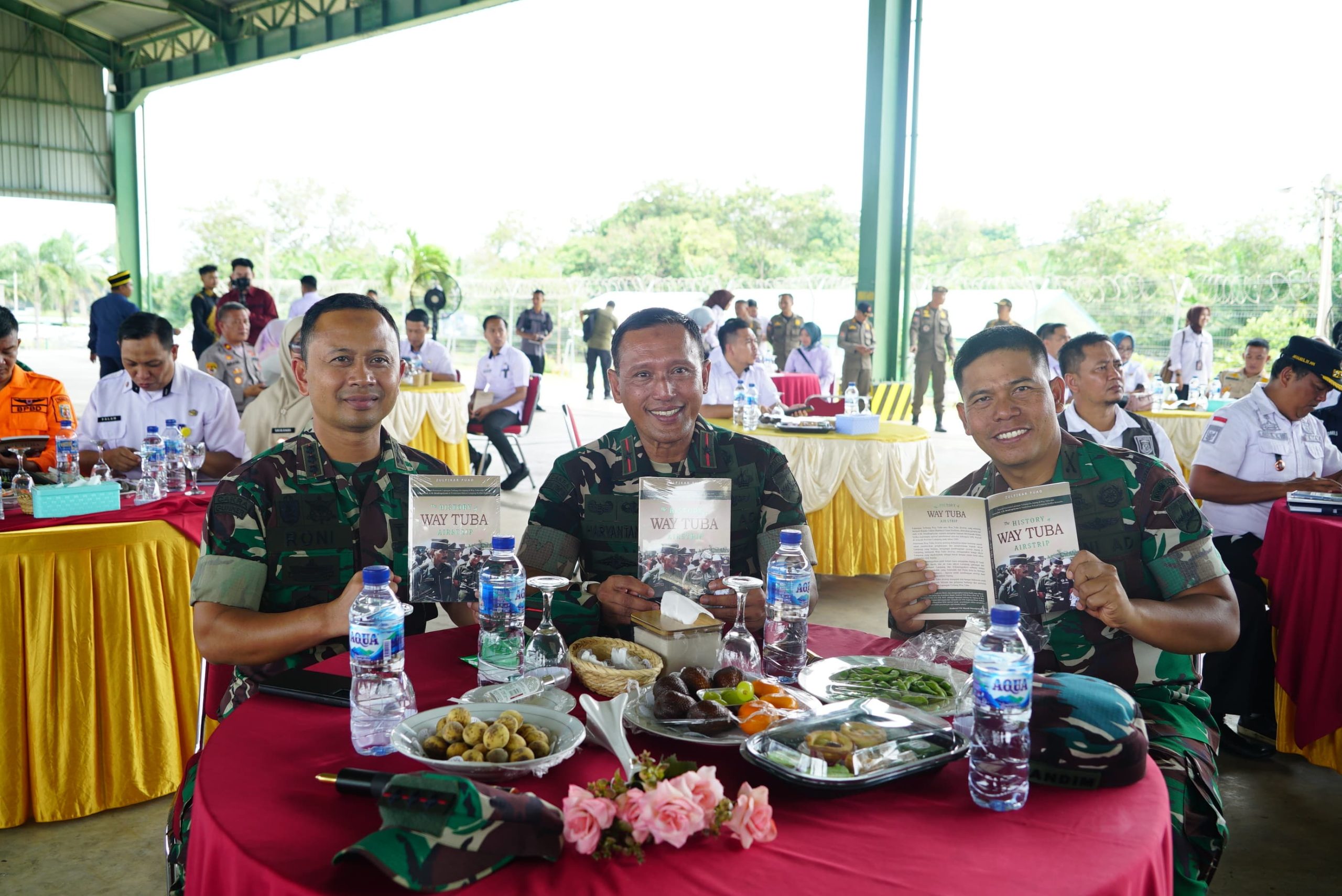 Panglima Komando Daerah Militer (Pangdam) XXI/Raden Inten, Mayor Jenderal TNI Kristomei Sianturi, S.Sos., M.Si. (Han), menghadiri peluncuran buku The History of Way Tuba Air Strip, oleh Jenderal TNI (Purn) Prof. Dr. A.M Hendropriyono, S.T, S.H, M.H., bertempat di Lanudad Gatot Subroto Way Tuba, Kabupaten Way Kanan. Rabu (31/12/ 2025)