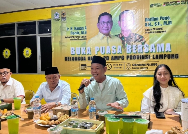 Sementara, Yuhadi mewakili Ketua Partai Golkar Provinsi Lampung, Ir. H. Hanan A Rozak dalam sambutannya menyampaikan apresiasi kepada pengurus PD AMPG Provinsi Lampung yang telah menginisiasi agenda rutin bertajuk buka puasa bersama.