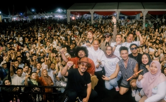 Di sela acara, vokalis Hijau Daun, Dide, turut mengingatkan penonton agar menjaga keamanan selama kegiatan berlangsung.