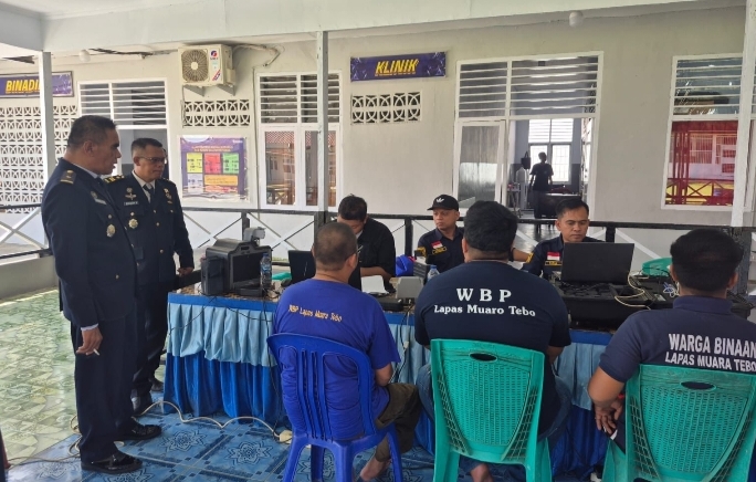 Lembaga Pemasyarakatan (Lapas) Kelas IIB Muara Tebo bekerja sama dengan Dinas Kependudukan dan Pencatatan Sipil (Dukcapil) Kabupaten Tebo melaksanakan kegiatan perekaman KTP-el bagi Warga Binaan Pemasyarakatan (WBP), pada Senin (27/4), bertempat di Aula Terbuka Lapas Muara Tebo. Kegiatan ini merupakan tindak lanjut dari koordinasi yang sebelumnya telah dilakukan terkait permintaan bantuan perekaman data kependudukan serta pemadanan Nomor Induk Kependudukan (NIK) bagi tahanan dan narapidana.