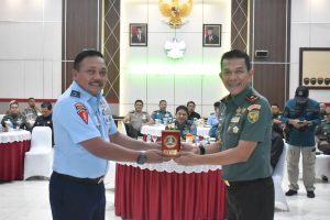 Lampung –Beritaphoto.id Komandan Korem 043/Gatam Brigjen TNI Rikas Hidayatullah, S.E., M.M., didampingi Kasrem 043/Gatam Kolonel Inf Enjang, S.I.P., M.Han., Danlanal Lampung, Danbrigif