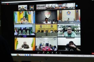 Bandarlampung.Beritaphoto.id Pemprov Lampung diwakili oleh Asisten Perekonomian & Pembangunan, Kusnardi, mengikuti Rapat Koordinasi Pengendalian Inflasi Daerah secara daring, di Ruang Command Center