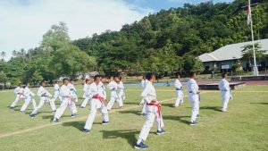 Lampung – Beritaphoto.id Prajurit Korem 043/Gatam pertajam kemampuan dengan melaksanakan latihan rutin beladiri karate bertempat di Lapangan upacara makorem 043/Gatam Jl. Teuku
